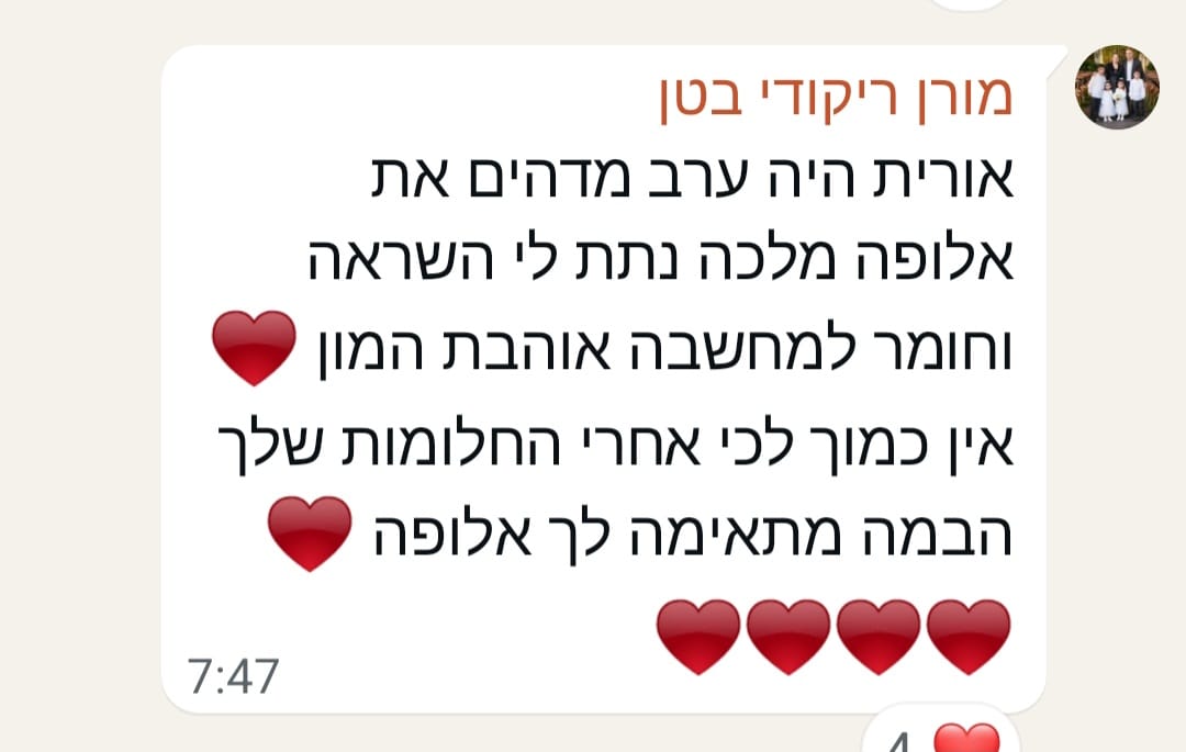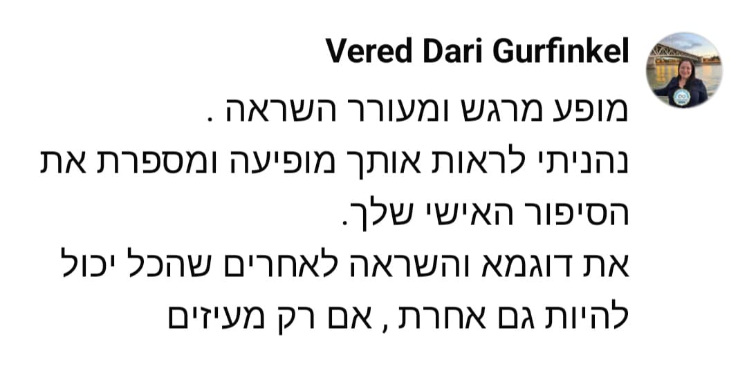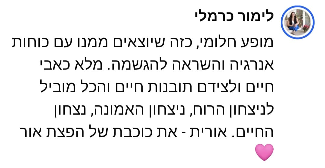 אני אדם של אנשים והגשמת חלומות, אישה של תנועה, חיוך ואור.